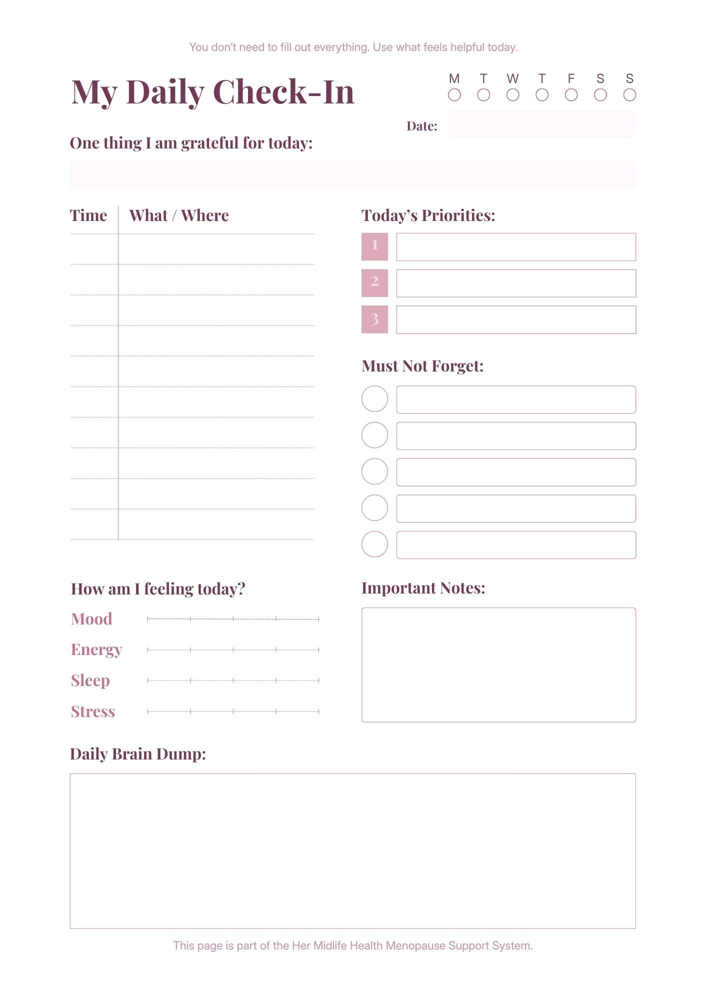 This printable page is part of the Her Midlife Health Menopause Support System.